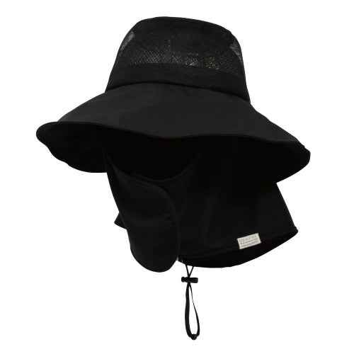 肩でつっぱらない波形にカットしたこだわりの日よけタレは、取り外し可能です。