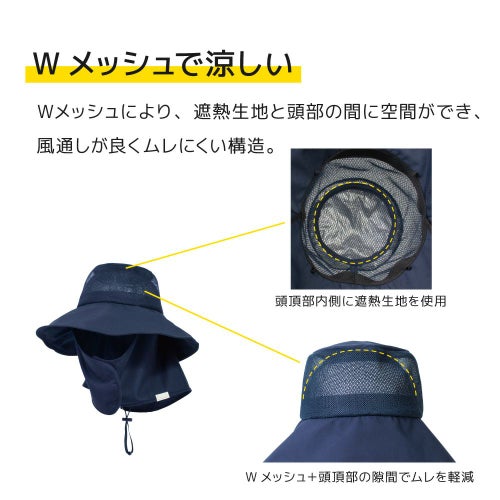 最も熱くなる頭頂部に遮熱生地を使用し、綿生地の帽子と比べて-7.5℃。