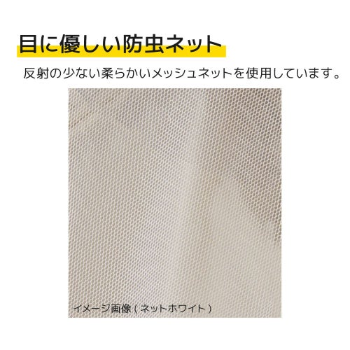 反射の少ない柔らかいメッシュネットを使用。良く見えて、肌にも優しい。ネットは黒色と白色の2色があります。