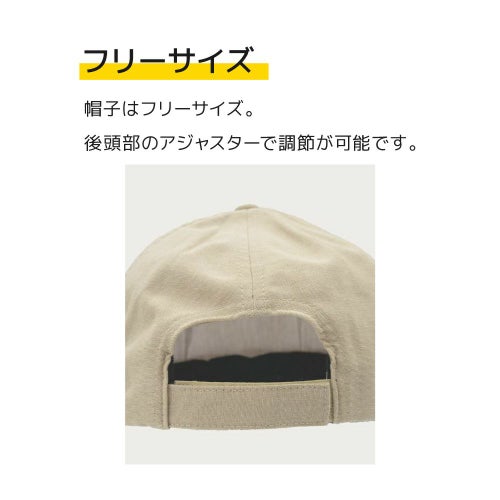 帽子はフリーサイズ。後頭部のアジャスターで調節できます。