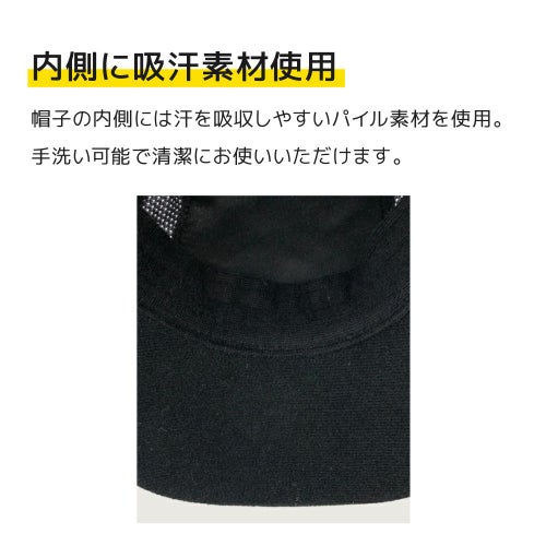 帽子の内側には汗を吸収しやすいパイル素材を使用。手洗い洗濯もできるから、いつも清潔!気持ちイイ!