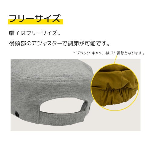 帽子はフリーサイズ。後頭部のアジャスターで調節できます。*ブラック・キャメルはゴム調節となります。
