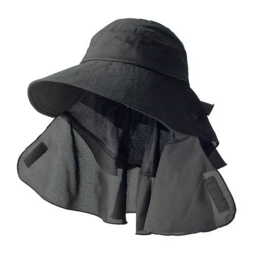 3段フリルの日よけは、風になびいて横顔を綺麗に見せる効果も!