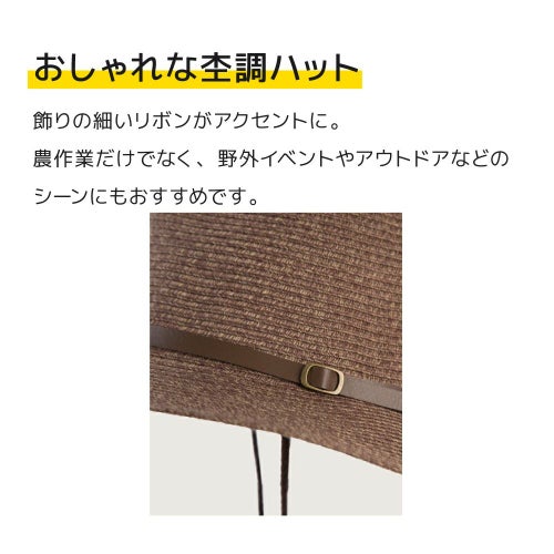ツバの上の細い飾りリボンが遊び心を満たしてくれます。畑仕事にもおしゃれを。