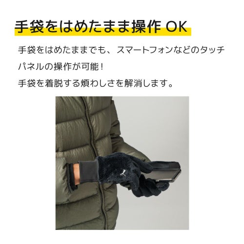 手袋をつけたままスマートフォンが操作できる、タッチパネル対応。