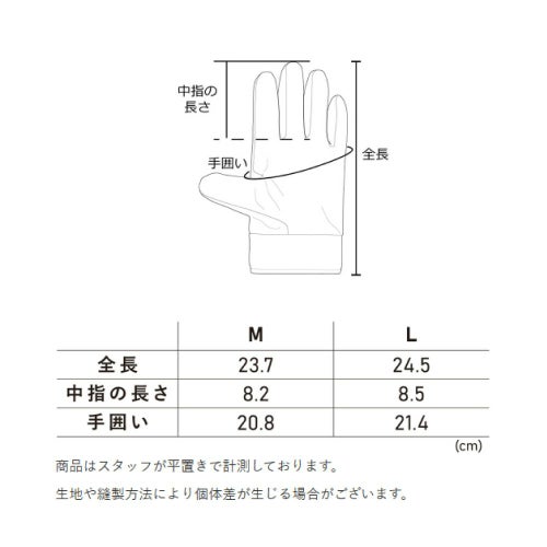 (作業用手袋のような装着感ではなく、多少余裕のある作りになっています)
