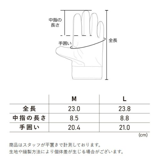 (作業用手袋のような装着感ではなく、多少余裕のある作りになっています)