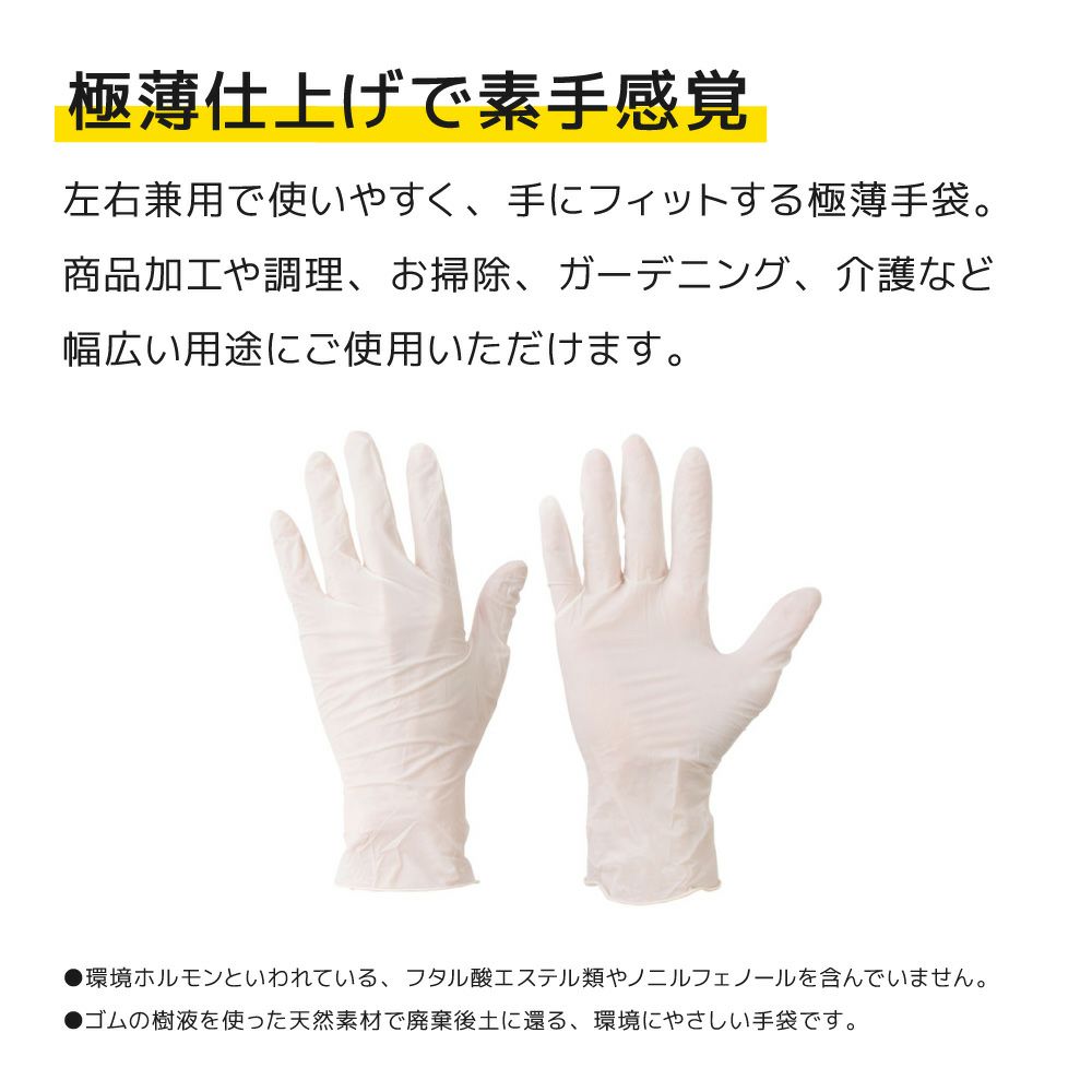 使いきり 天然ゴム極薄手袋(粉なし)100枚入