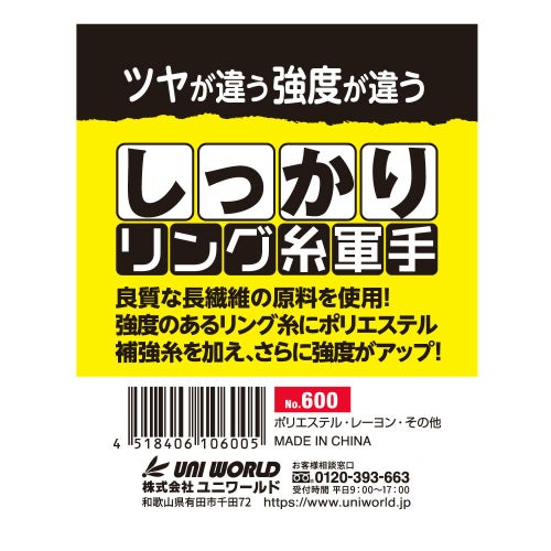 強度のある国産リング糸にポリエステル補強糸を加え、さらに強度がアップ!