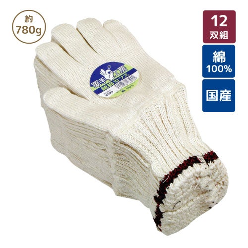 綿100%の糸で編まれた肌に優しい国産軍手です。