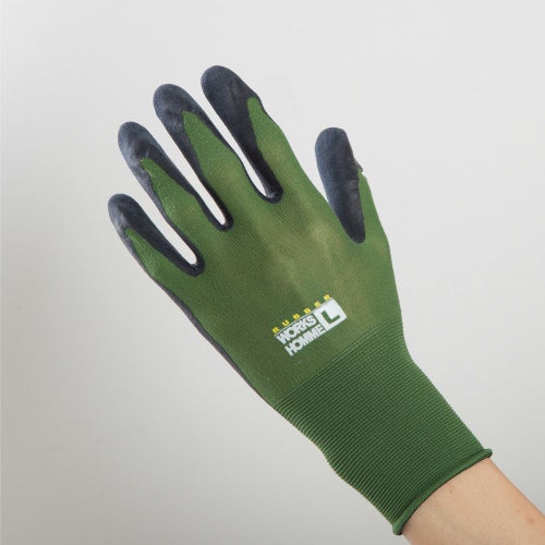 18ゲージ編みで薄く素手感覚で装着できる天然ゴムコーティング手袋。