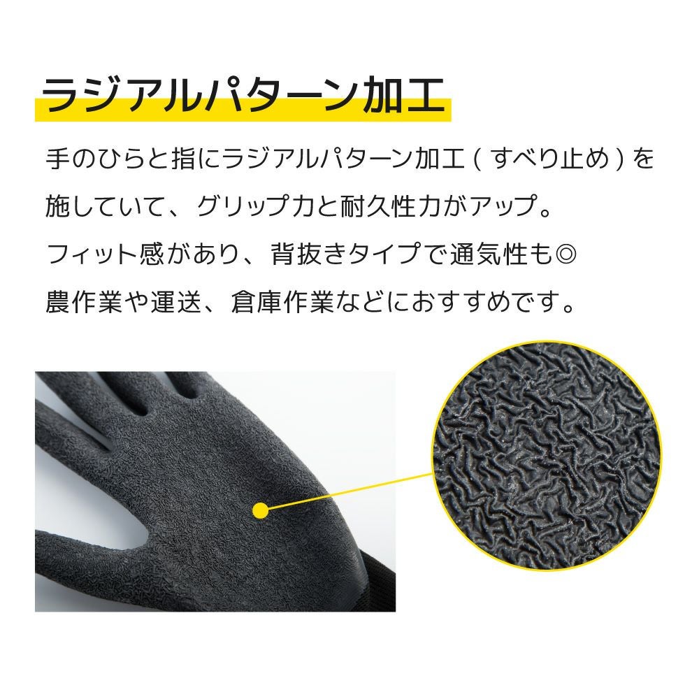 天然ゴムコーティング背抜き手袋