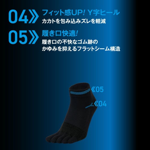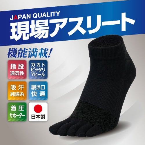 5. 国産靴下 現場アスリート 5本指 アンクル丈 2足組 25~27cm