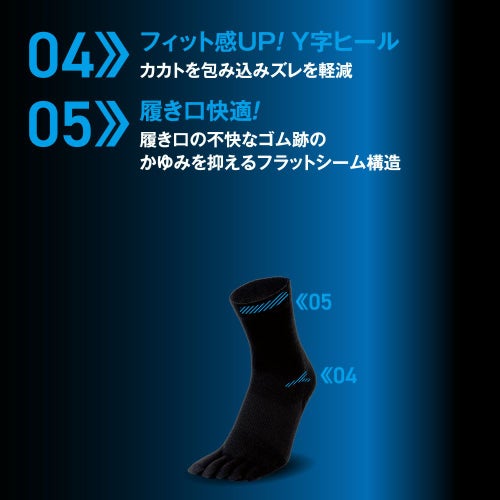 4. 国産靴下 現場アスリート 5本指 クルー丈 2足組 25~27cm