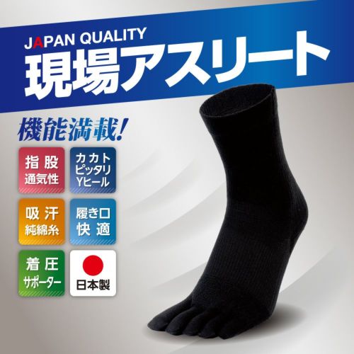 国産靴下 現場アスリート 5本指 クルー丈 2足組 27~29cm