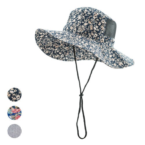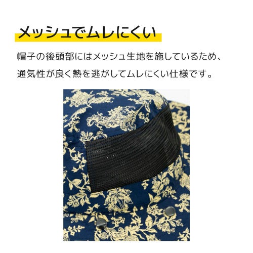 広いツバのカジュアルハット。後頭部はメッシュ素材なので、ムレや熱を逃がします。