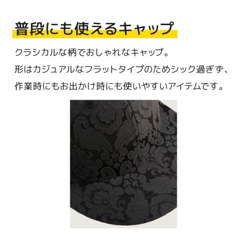 人気のフラットタイプのキャップに、クラシカルでエレガンスな柄の組み合わせがシックなキャップ。