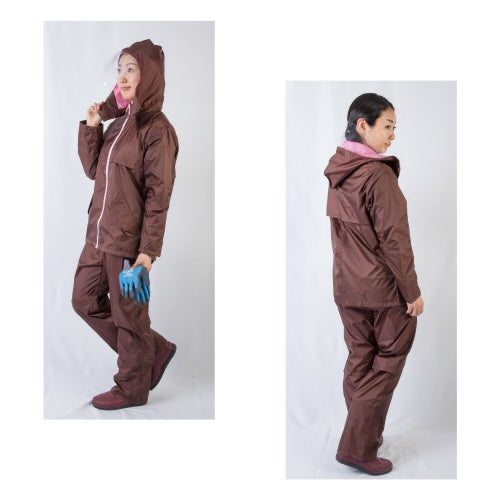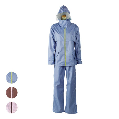 ウエストがスッキリ見えるAラインのレインスーツです。