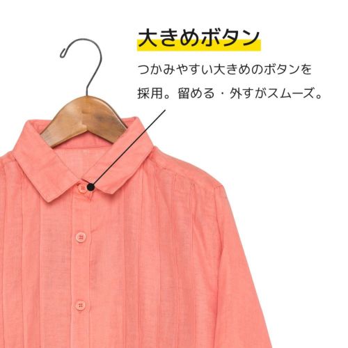 つかみやすいよう大きめのボタンを使用。気温に合わせて胸元のボタンを留める・外すがスムーズです。