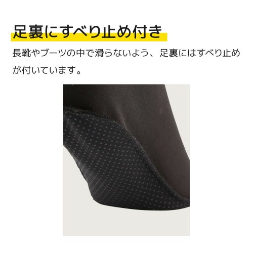 長靴やブーツの中で滑らないよう、足裏にはすべり止めが付いています。