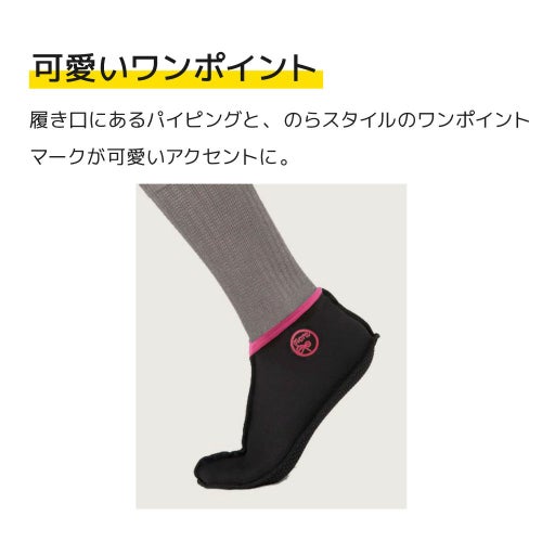 履き口のパイピングと“のらスタイル”の新しいワンポイントマークが、かわいいアクセントです。