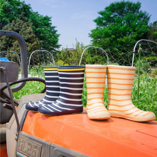 マリンイメージのボーダーが可愛い天然ゴム素材の長靴です。