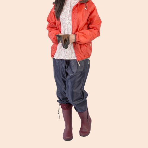 裾の後ろ部分だけゴムを入れていて、スッキリとしたシルエットに。長靴が履きやすく、土埃が入りにくいのも嬉しいポイント◎