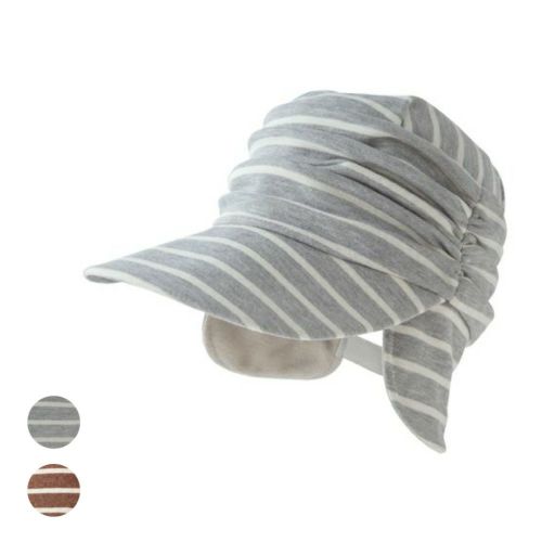 ナチュラルな雰囲気のボーダー柄のキャスケット。 もこもこのフリース生地でできた大きな耳当て付きで、寒い風からしっかりカバー!