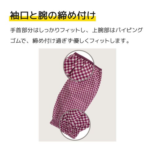 手首部分はしっかりフィットし、上腕部はパイピングゴムで、締め付け過ぎず優しくフィットします。