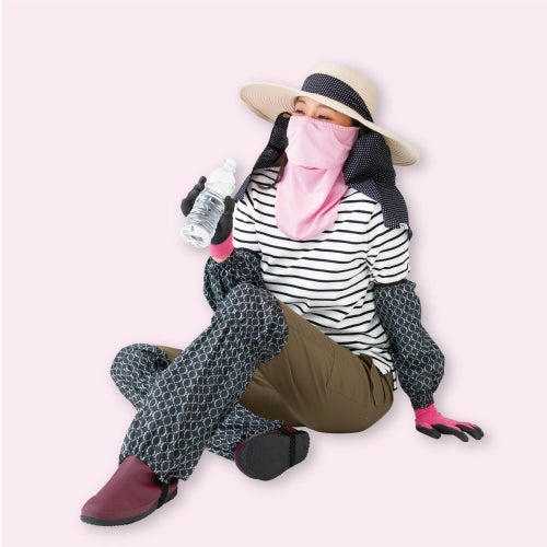 UVカット率90%以上の生地で、顔の日焼け対策に!