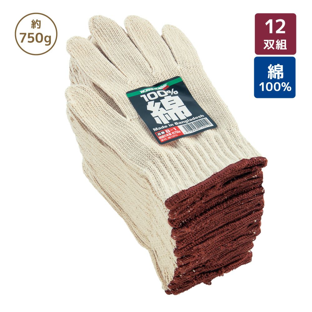 純綿軍手5本編 約750g 12双組