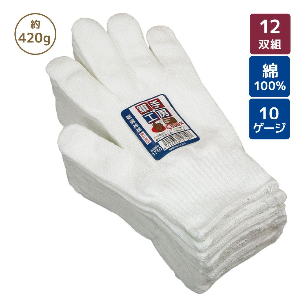 純綿軍手サラシ10ゲージ 約420g 12双組