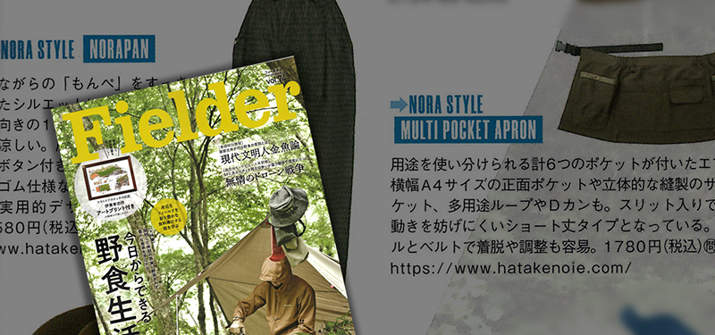 サバイバルやアウトドアに関するニュース、トピック、特集、特設企画などを紹介する雑誌「Fielder」Vol.74に、「のらスタイル」商品が掲載されました。