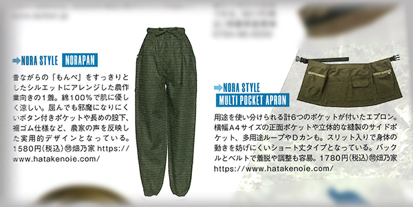 「野活着最前線」特集記事にて、「のらぱん」、「マルチポケットエプロン」が掲載されております。