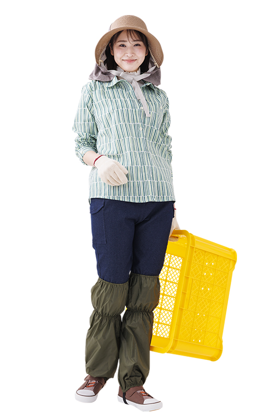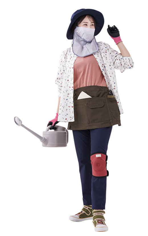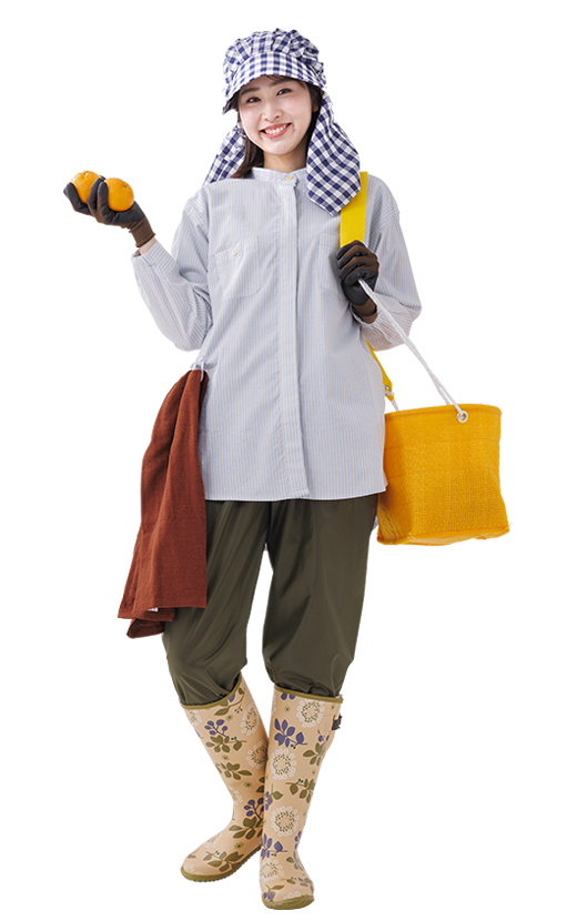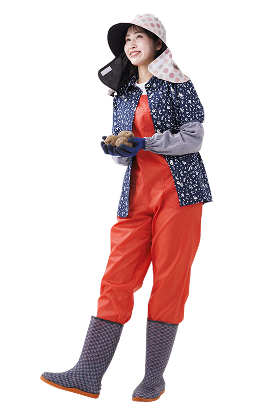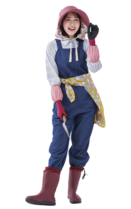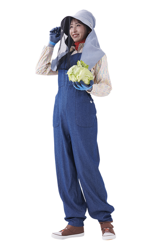 | 機能性 | 帽子:日よけ アウター:軽撥水、ムレ軽減 トップス:綿100%、吸汗性、袖口ハーフゴム サロペット:綿100% 手袋:天然ゴム、UVカット |