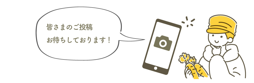③当アカウント「@hatakenoie_online」をメンション&ハッシュタグ「#畑乃家フォトコン」をつけて投稿